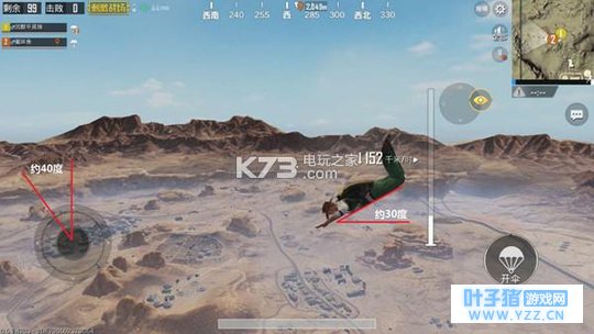 普通直线飞行的距离约为1500m左右,但是如果下落时遥感略微的向左或者向右偏40度,而视角不变,然后调整视野看自己人物与水平面保持30度,在这种情况下,虽然速度依然是126千米,但是却能够飞到2000米左右以上的距离,这样就可以让你跳的离航线更远,同时也可以离我们的目标点更近。 2、分工合作,既然是基友四排,自然就不能像野人一样无组织无纪律,最起码的要做到令行禁止,因为我们这几个地方都是非常肥的点,加上远离航线,我们最需要其实已经不是装备了,因为只要落到了这几个远离航线的点,装备就有了保障,我们缺乏的是机动的手段,所以在四个人都获得了基本都作战武器之后,就要分一个人去寻找载具,而其他人继续搜索,并且多多留意燃料,并且记得有什么好东西给找车的兄弟留一份。