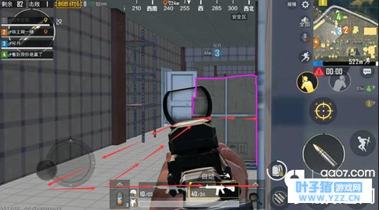 原因在于,距离窗口越远,那么我们露给外部敌人视野中的身体体积越小,被命中的几率也就越小。同时在观察外部请时还要注意左右不停的移动,增加对手瞄准的困难。 通道卡位 以C字楼内部楼梯为例。要知道近身掩体优势不在,躲在掩体后的我们视野反而会比没有掩体对手更小。在近身掩体不再适用的情况下我们应该如何应对走廊通道上的敌人呢?此时我们可以与掩体保持一定的距离,并贴近墙壁拐角,同时侧身开镜,瞄准敌人即将出现的位置即可。