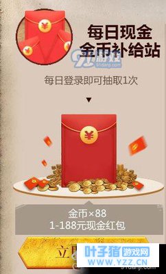 1、每日现金金币补给站 玩家每天登录游戏都可以抽取1次现金奖励。