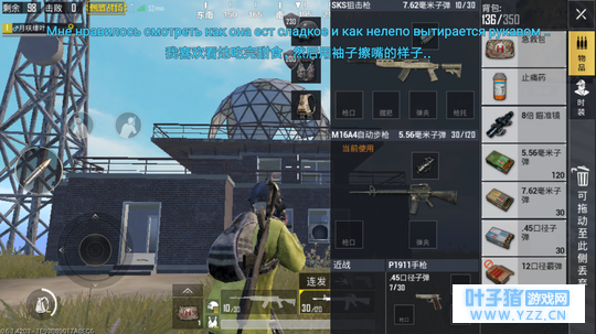 G镇附近也有一个卫星楼 我知道你们可能会说一个房子要是没装备怎么办 经过我多次的跳伞实践发现这个地方还是有少许装备的(只能养活一个人) Kar98k 出现率50%到60% SKS出现率40%到50% M416出现率50% SCAR L出现率50% M16A1出现率50% 三级头出现率30%到50% 8倍镜出现率20%到40% 4倍镜出现率40% 背包(有可能没有) 药(也是一样 不过通常都是一个止痛药和1瓶能量饮料还有一个急救包) 子弹(5.56mm和7.62mm) 5.56mm可能会多一些 7.62mm可能会较少 因此我们可以看出这个地方基本上出来都有一把步枪和sks或者98k这样子