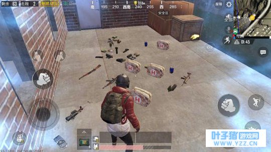 小编为了写这篇文章特地去了普罗港,当然时间有限小编只搜了图1红圈内的地方,说说我的资源:一把满配四倍98K跟满配M416,三级头二级包二级甲,急救包5个(中途小编用了一个),两瓶饮料和一瓶止痛药,地下还有其他枪。