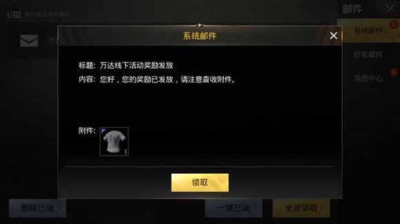 NO.3 万达线下活动定制T恤 这款定制T恤是年初刺激战场与《红海行动》影游联动活动当中的奖品。 只有在万达影院举行的现场吃鸡竞赛中成功吃鸡的玩家才有资格获得的奖品,全服限量10件!将它排在第三名,绝对的实至名归。