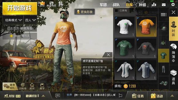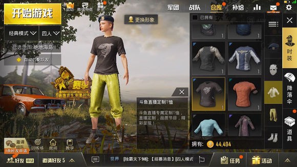 NO.6 斗鱼直播定制T恤 这件衣服是海鲜台与刺激战场进行联合推广活动的期间,通过斗鱼积分才能过兑换的。目前是没有其他方法获得这件斗鱼T恤啦。 虽然黑灰的色调,比起其他平台的衣服,外观要不起眼,但是胜在这衣服稀有度高!在某宝上也是将近1000软妹币哦~