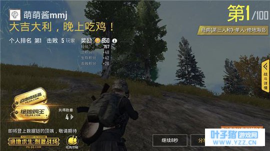 这次由于前期大部分时间都在耗,几乎没怎么杀人,到了决赛圈就疯狂找人干,可是人数渐渐减少,我还是没看到,一直到最后三个,我绕到背坡准备吃鸡,这时候背后一阵枪声,我中了两枪,这时候由于没有掩体,我转过身来,开始疯狂走位并且第一时间找到了这位同学,一阵反击之后,他倒在我精准的枪法之下。 最后又到了我跟一个对手单挑时间了,不过在我刚转头就发现这个倒霉的家伙在跑毒,于是我一阵猛烈的攻击之下,他直接应声倒地,被我成功吃鸡。