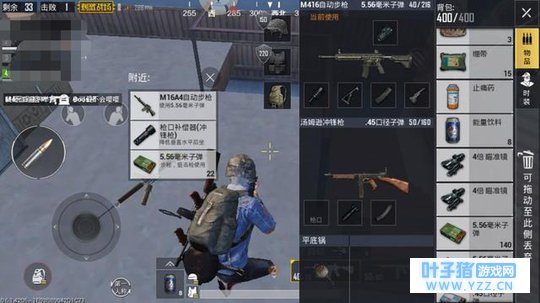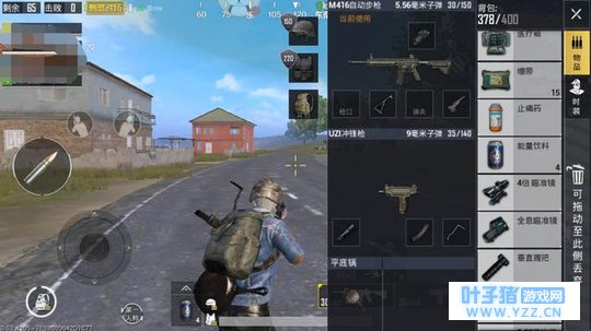 然后,搜搜搜,看一下这片地区的物资,4瓶饮料,倍镜也有了,枪M416也有了,还有一个医疗箱,其实有时候打野挺肥的