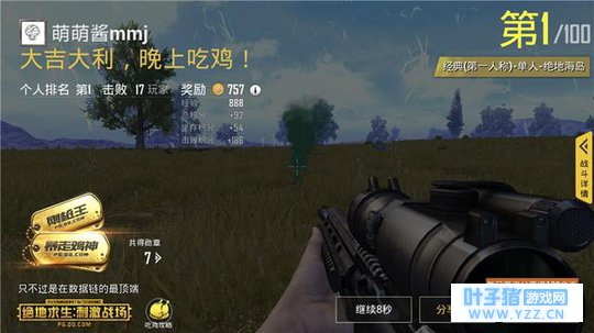 击杀分 顾名思义就是淘汰人数和伤害进行评定,如果你击杀数少于一定量,比如你就算零杀吃鸡,击杀分就加不到喽。 总分 是根据生存和击杀进行综合评价得到的分数,也是你最后每局结束后的加分,不过生存分占了一大部分,远大于击杀分。