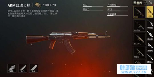 P18C作为游戏中唯一一把全自动手枪,配合扩容弹夹后25发子弹的载弹量。对于中近距离的战斗中效果可以说是出类拔萃的。尤其是当刚刚落地的时候,有人端着散弹枪过来的时候,一把P18C如潮水般的倾泻弹药,绝对是最佳的反败为胜的方式。 步枪:AKM