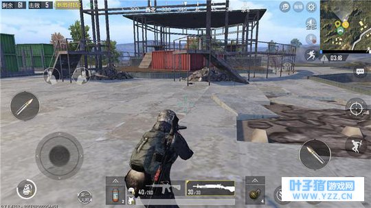 知道了刷新点,现在就为大家介绍这个富得流油的打野点,这个点跟G港有点类似,是一个很大的平台,有很多的集装箱,同时在集装箱上方有很多物资,这里是物资的一个重要集中点,然后就是指挥室沿着楼梯上去,同时楼梯上也有很多资源,沿着圆形指挥室一圈也是各种资源,然后就是地面,这里的地面不像其他资源点,地面上到哪都有资源,最后一处资源点就是木箱,在这个资源点的最右端有很多木箱,在这里也有许多资源。