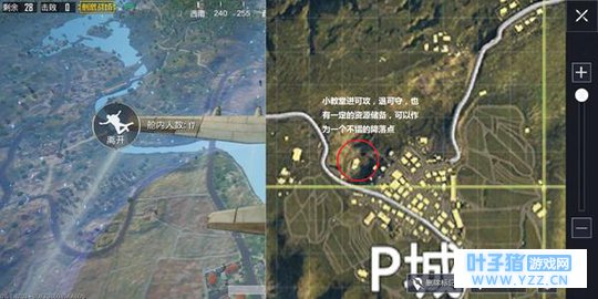 隐蔽打法降落地点图中所标示的位置是一座教堂,虽然建筑稀少,但是地处山顶视野广阔,与此同时也因为周围房屋稀少,所以玩家很少会选择这个位置。尤其是四排游戏,教堂依旧是一个比较隐蔽的降落地点。一方面可以通过视野确定是否进入P城,或是退回其他位置继续搜索装备。另一方面,也可以在教堂附近架枪,掩护其余队友进城搜集装备。