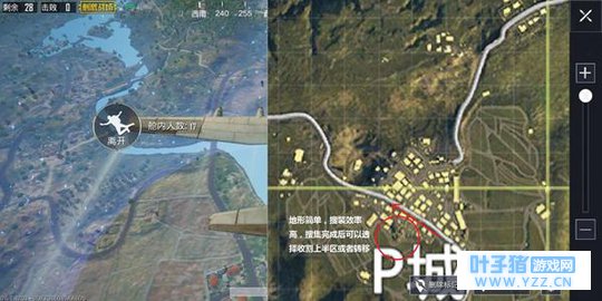 一夜暴富降落点在P城,图片上标记的地点是整个P城最富裕的区域,大型房子、高资源的聚集地,并且房屋之间的间隙较小,在这里的结果一种是一夜暴富,另一种便是落地成盒,选择这里降落只能祈祷自己比别人更早的降落。