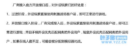 刺激战场将增加外设接口 还能和模拟器玩家一起玩了?最近,绝地求生刺激战场官博放出了一则新消息,刺激战场将增加新的外设接口,外部所有厂商都可接入开放接口,而针对外设玩家,官网会新增对应的外设匹配池。所以,一直对手柄和键鼠等外设跃跃欲试的小伙伴们可以去尝试一下啦。不过游渝文化嗷梦不禁开始担心,以前在家里就不敢和女朋友抢遥控器,现在怕是连鼠标键盘都要被女友拿去打游戏了哦。