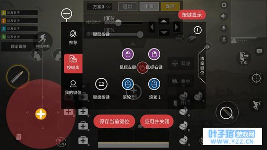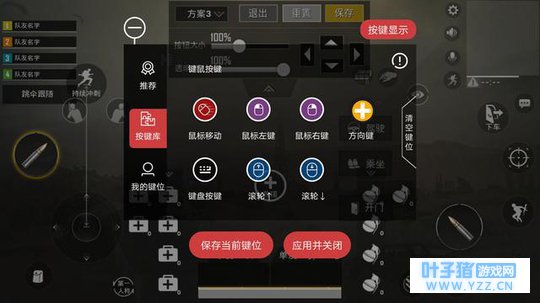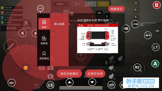 同样通过选择【键位设置】后将进入键位菜单,在这里可以通过【推荐】中的默认配置立刻套用官方提前适配好的按键配置,省去自行设置的繁琐步骤,确认无误后点击【应用并关闭】即可使用。