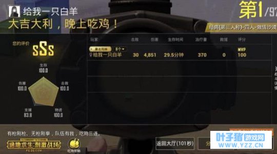 绝地求生:单人四排豪取30杀,满评分吃鸡,吃鸡中的灭霸?