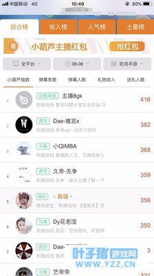 并且8GK还以23小时,成为了最快完成挑战千人斩的刺激战场主播。在23小时击杀一千位玩家,相当于在游戏对局中不论发挥好坏,每场收获的人头都必须恒定于某个数值。这完全就是硬实力的表现,一般人在发挥不稳定的情况下是根本没有办法完成的。再看小葫芦排行榜,吃鸡手游全榜榜首也是他。毫无疑问观众们对他的肯定与喜爱是实实在在的。