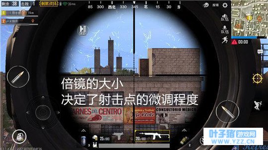 判断距离是非常重要的一个环节,如果萌新战士不太知道距离的远近,则可以进行双人排组,观察队友时会出现距离的标识。我们可以利用眼前观察对方的物体大小,来进行距离的估算,比如,距离约200m时,压枪就不能太过靠下,瞄准对方的腰部,便有更大概率击中头部。距离约400m时,中心点就要更靠下一些,瞄准对方的脚部,射击的效果会更好。 ② 倍镜也是决定因素之一