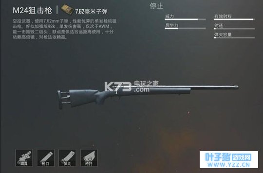 裸身伤害:72 裸爆头伤害:72*250%=180 一级防弹衣伤害:72-72*30%=50.4 二级防弹衣伤害:72-72*40%=43.2 三级防弹衣伤害:72-72*55%=32.4 一级头盔伤害:180-180*30%=126 二级头盔伤害:180-180*40%=102 三级头盔伤害:180-180*55%=81 98K获取方式较为简单,全图各大资源点都有概率刷出,当属栓动狙中最容易获取的枪械。并且威力较为不俗,单发伤害可以爆头击倒二级头盔的满血量目标。但是远距离有较大的子弹下坠,远距离射击需要一定的抬枪射击操作。枪械可装配的配件较少,除开倍镜和子弹袋作用较大之外,托腮板一般会用作备选配件。攻击头部可有效压制对手,但攻击身体对目标威胁较小。 M24