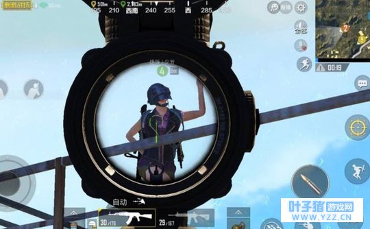 但是当我们一直沉迷于漂亮的舞姿时,我们往往不知道在什么地方会突然之间出现一个8倍镜瞄准你的项上人头。但也有很多玩家会在击倒敌人后、为其献上一段漂亮的舞蹈已似嘲讽,虽然这样自己是挺开心的,但被嘲讽的人心里必定有几句话想要告诉你。如图所示,该玩家就在某一处角落里正使用着倍镜瞄准了一位沉与迷舞蹈的漂亮小女子,如果该玩家想要击倒她的话,简直是轻而易举的事。