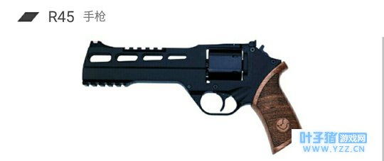 R1895转轮手枪“小98K” 这把R1895手枪使用的是7.62毫米子弹,载弹量为固定的6发,所以这把手枪的伤害高的吓人,无论是打头还是打身体,而打头时的快感更是不可言喻。问题是打不打的到。以上就是这把枪的优点了,接下来我会为你们一一解析这把富有年代感的左轮的尿性之处。首先是这把枪的装弹,从外表就可以看出,这把左轮手枪的**是不能左摆打开的,所以只能打开退弹口兼装弹口一发发把弹壳倒出来再把子弹装回去。所以很容易在装弹时就被人打死了。其次,这把枪的设计速度也是让人欲哭无泪,后坐力也是大的吓人,弹容量更是无话可说,最重要的是!这把左轮手枪不能装瞄准镜,所以完全不推荐用。 可配装配件:手枪消音器 玩98k的小伙伴可以带一把,万一打中人了呢? 接下来这两把可就是沙漠地图里的扛把子了。 第一把就是R45转轮手枪,因为发射.45ACP子弹,所以威力奇大。
