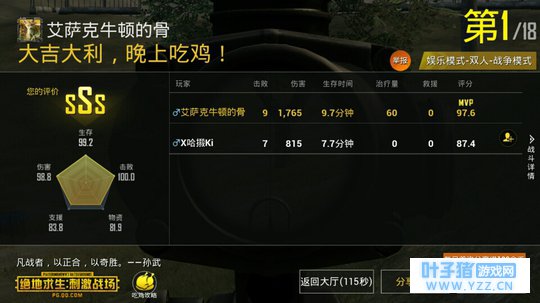 短管霰弹枪“大手炮” 这把双管霰弹枪可是大有用处的,虽然因为是截短版,射程异常的近,但是在贴脸的时候这绝对是一把神器,无论是攻楼还是守楼,躲门还是别的,在沙漠地图里密集又破烂的房区里可谓作用不小。但是这把枪的优点非常明显,射程放下不谈,装弹速度和容错率也很低,机瞄的作用也不大,也不能装任何配件。 可配装配件:无 推荐携带,推荐带10发或者6发12mm口径霰弹,相当于多了一把霰弹枪,在房区或者蹲楼时都非常有用。 送上自己战争模式吃鸡图一张,祝大家大吉大利,天天吃鸡。