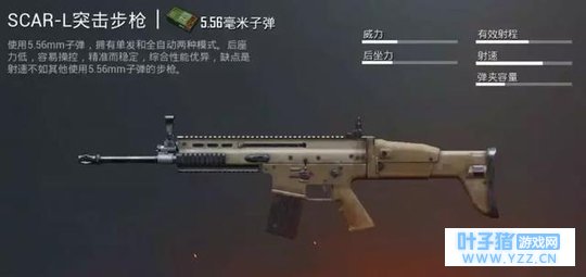 第一名 SCAR-L 这把步枪是5.56枪械,在更新后,得到了很大的增强,后坐力变得更小,对新手玩家来说非常友好。