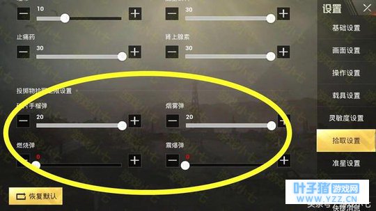 投掷物品中,也可以自动拾取了,破片手榴弹、烟雾弹、燃烧瓶、震爆弹你都可以设定自动拾取数量,每件最大拾取数量是20个,当然你不可能背那么多的,又不是手雷战。