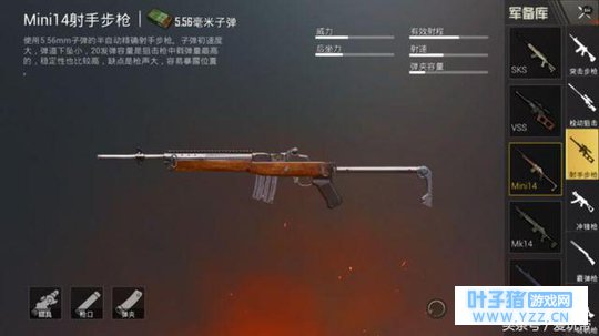 说起来你们可能不信,最受玩家们欢迎的狙击枪是MINI14狙击枪。因为MINI的射速较快,子弹容量大,在威力方面也是很不错的。当面对多名敌人的时候,MINI的优势就表现出来了,它可以稳定的快速射击敌人,在最后的决赛圈时,能够占据上风。MINI和SKS特别适合在双人或者四人组队模式中使用,所以它才是狙击枪的人气王。