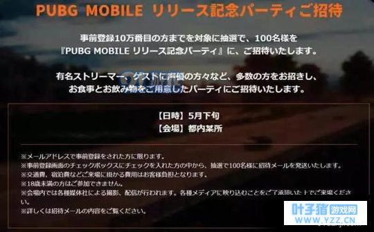 据日服官网今日发表的消息,光子工作室的《绝地求生:刺激战场》海外版《PUBG MOBILE》将于5月中旬登录日本APP Store及谷歌商店。官方承诺当预约人数突破10万人次时,将会给与众多的道具奖励,另外还会从前10万名预约者中抽取100名幸运玩家参与5月下旬由官方举办的Party。