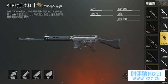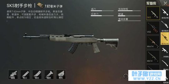 top5:sks,这把枪可以说是非常垃圾,中距离根本就不去步枪,伤害太低,还不如slr,很多高手都不会选择这把枪。