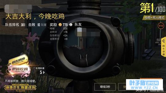 安全区外当我们挺到最后十个人的时候,你紧张的看着周围,生怕有敌人突然冒出来,但是这时候屏幕上的生存人数在逐渐减少,突然就很奇妙的吃到鸡了,原来其他的玩家(机器人)还在跑毒。