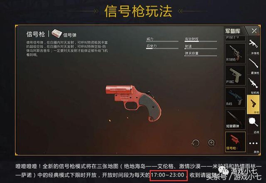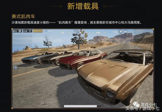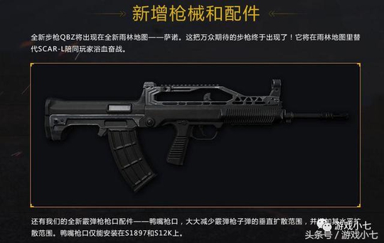 其中跟PC版本一样,新增了载具,防弹乌阿斯吉普车和肌肉跑车,这个跑车好像只有沙漠地图有吧,还新增了一把枪械,QBZ突击步枪,使用的子弹也是5.56mm子弹,不过这把枪只有新地图“热带雨林”地图才刷新的,新增的信号枪将是限时玩法,每天下午17点到晚上23点可以,在三张地图中的,经典模式下玩到。