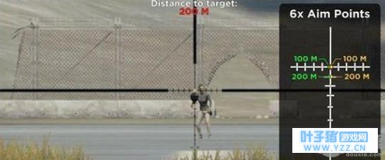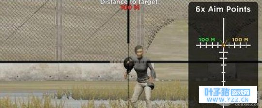绝地求生刺激战场新版六倍镜怎么用 简单来说,所有带刻度的倍镜都遵循着“ 不同距离使用不同刻度瞄准 ”这一规则,而之所以大家在实际游戏中会出现打不准的情况,其根本原因就在于距离把控不到位。 从某种角度来说,六倍镜的出现能够大大降低这一情况的发生---因为它自带了贴心的测距仪,玩家只需要将倍镜中目标的大小与刻度进行对比,就能够 准确判断出300、400、500、600和800米外目标的距离 。 首先是目标距离100米以内的瞄准方法。非常简单,直接准星瞄准即可,这一点跟其他四倍镜、八倍镜一样,而且不论你使用的是SKS还是98K都是瞄准这个点: