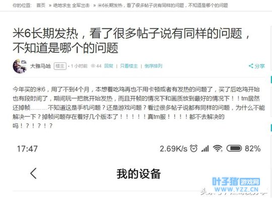 现在,就轮到我们这两款手游登场了。首先,地面方面,刺激战场实在是手游界的楷模,和端游的地面设计不相上下,色调,分层方面也是十分相似。反观全军出击,就十分悲惨了,地面可以说是一塌糊涂。莫名其妙的多了几束杂草也就不说了,关键问题在于,其地面给人的感觉就是一团糟,没有色彩上面的变化,十分模糊。再来看看房屋方面全军出击的表现吧,看它是否能在这里扳回一局。令小编大跌眼镜的是,全军出击的屋内大亮,和端游完全不符合,也违背了客观事实。在这一点上,刺激战场就要得好多了,房屋结构清晰可见,房屋内部也是比较暗淡,符合端游的设计理念。再来看看远处的树,被全军出击砍去了一大片,实在可笑,即便是很少的树木,也很难做到像刺激战场那样清楚。 通过上面这组图的对比,小编觉得从很大程度上的反映出来了,两款手游谁是在用心作游戏,谁是在滥竽充数了。好的吃鸡类游戏,应当在细节方面花大功夫,因为那取决着玩家们的游戏体验好与不好。所以,这一票我投给刺激战场,用心做游戏就应当被大家称赞,它能被玩家认可,全靠一片真诚和精彩的还原。不相信?好,小编让你看看网上玩家们的评论。 在玩家们的反响中最为强烈的就是掉帧问题,玩家们反映在全军出击的各个图中都有出现画质掉破下限的问题,掉帧的情况十分严重。