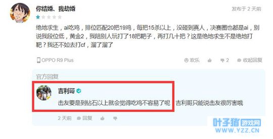 官方对玩家反馈询问结果不理不睬,对玩家指出的AI机器人太多选择敷衍了事已经不是一次两次了。不经让小编想,在这种公开场合,作为游戏官方人员,确定要给玩家讲“到钻石段以上就会觉得吃鸡不容易”这句话吗?那这意思,难道是间接承认了“钻石以下无玩家”呢? 真的对官方的这种回复感到非常不爽啊! 玩家说人机问题,你给人家说是他段位太低只能匹配人机? 随着热带地图更新的时间越来越久,玩家已经丧失了对新版本体验的新鲜感了。而为了抢占更新时间,而大量阉割游戏场景以及效果的《全军出击》又遭到了各种游戏bug问题。现在来看,《全军出击》真的一时半会难以脱身了,在这些问题全部修复之前,玩家们的心已经伤不起了。这倒是也难怪,有的玩家会干脆放弃《全军出击》转而向隔壁《刺激战场》投怀送抱了。 以上仅是本人个人观点,不具备任何专业知识,请大家关注我,一起交流~~~ 本文来源:今日头条,作者:董洪胜sunshine,转载请注明来源。 |
