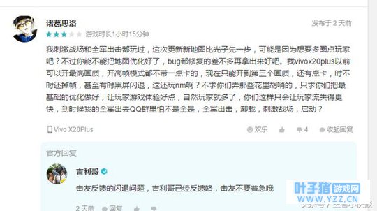 玩家对游戏频频出现的“闪退”问题已经非常不满了,一局之中能接连闪退5次,也是彻底让玩家失去了游戏的信心。因为没有什么直接与官方对话的平台,所以只好在游戏评论网站下进行回复,希望官方能够引起重视。