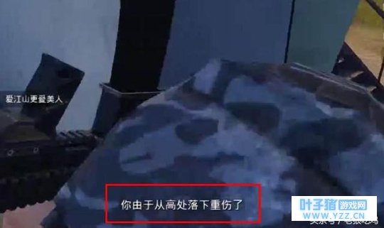 本以为此处卡住是个偶然,犯贱的我也想尝试一下,没想到,同样也被卡在了窗户口上,动弹不了了,无奈只能也让队友赐我一颗手雷!真是报应啊,刚才还在炸别人,现在轮到被别人炸了。但是当我被炸倒的一刹那,游戏却提示我是从高空跌落了!