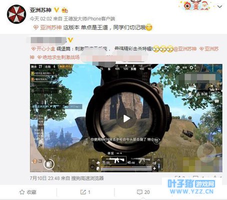 不过现在的版本里,确实都是比开镜瞄准的速度,如果不幸在游戏里撞见了苏神,可能还没来得急掏枪,就已经成盒子了。毕竟有着国服第一狙的头衔。你们觉得呢? 本文来源:今日头条,作者:游戏灯,转载请注明来源。 |