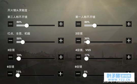 第三人称不开镜 80% 第一人称不开镜 80% 红点、全息、机瞄 50% 2倍镜 30% 3倍镜 20% 4倍镜、VSS 20% 6倍镜 15% 8倍镜 9%