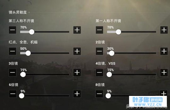 第三人称不开镜 70% 第一人称不开镜 70% 红点、全息、机瞄 50% 2倍镜 30% 3倍镜 20% 4倍镜、VSS 15% 6倍镜 9% 8倍镜 9%