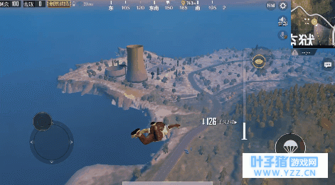 四处观望 找好了降落点,我们在降落的时候不是意味往自己标记的点跳,你同时可以使用右上角的小眼睛进行左右前后的观察,来确定周围有没有人,有多少人,是继续抢这个点还是战术性转移往其他点,这样也是一种避免前期落地成盒的有效办法,这样你也能知道自己在的这个点附近有多少人,让你在搜资源的时候会更加小心。