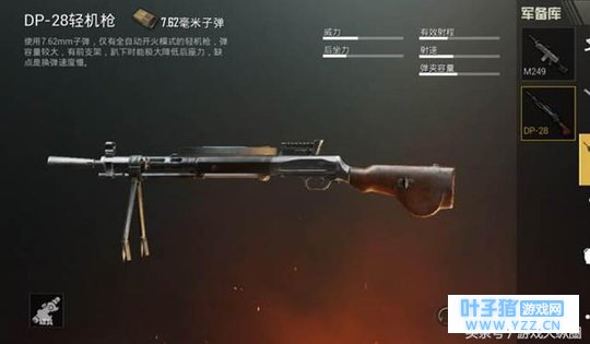 维克托冲锋枪也叫作短剑,短剑是我最爱的冲锋枪,把枪即的威力被削弱过后也仍然是绝地求生中秒伤前几的武器。但缺点是单发弹匣基本只能放倒一个人,而且比较好的是这把武器的隐蔽性极佳,随便蹲在一个草丛中,由于枪管也比较短,几乎不会被敌人发现导致了敌人从身边经过也没法发现你,接下来就是你表现的时间了,LYB必备。 Top.2【DP-28轻机枪】