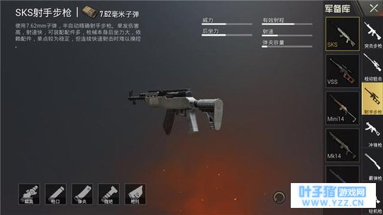 SKS是一把很吃配件的连狙,如果是一把满配的SKS各方面数据上肯定是完胜Mini14的,但就是SKS的配件比较难集齐5个配件都很关键,枪托、枪口、弹夹、握把和倍镜缺一不可。 如果没有满配的SKS不仅威力上弱了少许,而且操控非常难,枪口抖动和后座力都比较大,几发下来枪口就不知道飘哪了,压枪特别困难,而如果满配的SKS操控性就强了很多,但依旧不简单,所以满配特别关键。