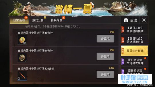 这活动要求是需要玩家 在经典四排中累计存活120分钟 ,才能获得。这时候就要邀请上三五好友,进行“苟到底”的战争了。 不过,其实也不算太难,很快就有网友完成了这个“夏日生存作战”的活动,并且真的拿到了AKM赤橙。但是!只有7天的使用权。