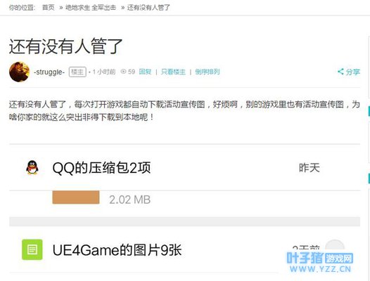 还有上面这位玩家说的,在玩游戏时会自动将活动宣传图自动下载到手机中,这可以说是十分恶意的行为,十分过分,成为玩家们的困扰。小编反映了这么多全军出击的bug,只希望全军出击终有一天和刺激战场保持同步吧,现在的两款游戏实在没有太多可比的地方,还原程度差距太大,反响差距也是很大的。 本文来源:今日头条,作者:Mino53yaheihei,转载请注明来源。 |