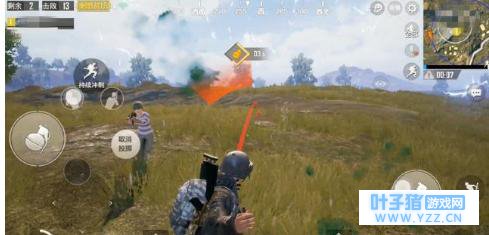 例如这把吃鸡中,只剩下我和一名人机选手,我并不打算直接开枪打死对方,打算用手雷炸死对方,对, 皮这么一下就是很开心~看看究竟谁先倒地,谁能吃到鸡.