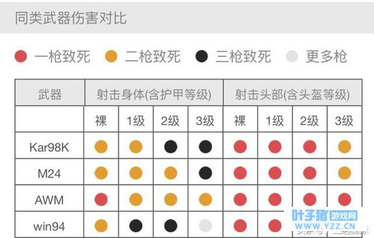 AWM 狙击之王不用小编多说,身体两枪头部一枪、7 发的弹匣,说它是游戏最强枪械也不为过!可惜产出于空投且几率较小,令无数玩家求之不得。 很多人觉得 M24>98K,其实不然,M24 在退出空投后被削,与 98K 区别仅在于弹匣容量和身体的临界伤害微弱区别。为什么说 M24 约等于 98K,因为 98K 的刷新率远高于 M24!而 98K 与 M24 的初速度和开枪声音有区别导致两把枪的手感差异大,很多玩家用惯了 98K 后发现用 M24 打不中远距离的人,这是因为两者对于远距离的同一个敌人,需要预判和抬枪口的程度不同,因此很多 98K 玩家不一定习惯用 M24。