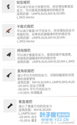 最后是握把,能够装配握把的只有SKS,一把,而SKS后座力大广为人知,所以增加后座力的轻型握把和半截式握把肯定是不合适的,剩下的三种握把 垂直>拇指>直角 。
