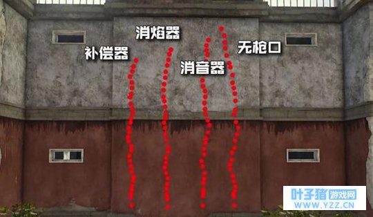 测试方式很简单,满配的M416分别去掉其一配件进行后坐力测试,对比三次射击弹道后即可看出谁最重要! 从左到右依次是去掉了枪口补偿器、半截式握把、战术枪托