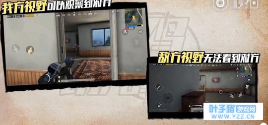 在必须要强上的时候要注意两点。一个是判断对方位置。仔细挺有没有房子外面的脚步。防止被包夹。然后就是另外一个技巧了。那就是卡视野。第三人称是可以卡视野的。对方看不到你,你看得到对方!