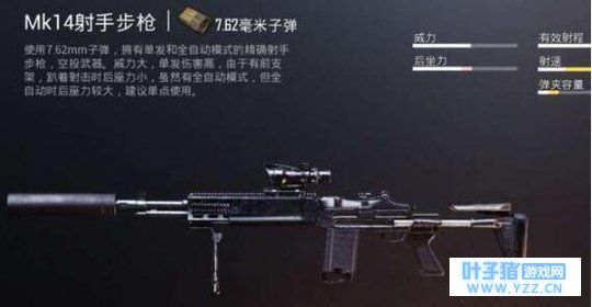 第五,MK14 MK14我们常常称它为“妹控”,它应该是空投里面最容易出现的一把枪,它的威力比SKS大,且是唯一一把能够连射的狙击枪,很多玩家对这把枪都不太感冒,往往是看见后也不捡,实际上这把枪还是很强的,但相对其他空投枪刷新率高上一点。 第四,M249、AUG、GROZA 第一把枪M249刺激战场中仅有的两把机枪之一,后面两把枪相当于普通突击步枪的进阶版,只是这三把枪都只有在空投中才会产出,所以从稀缺程度上来看,三把枪稀缺程度都差不多,其中M249最好是配上吉利服,给伏地魔使用。