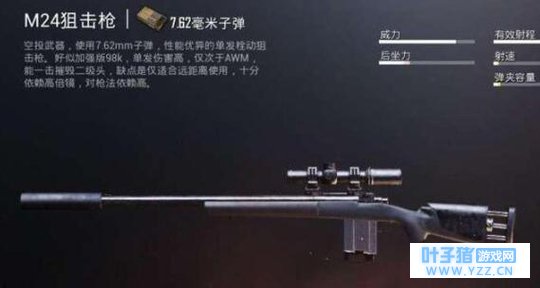第六,M24 M24以前只在空投刷新,但是后来随着端游将M24移出空投,手游端也迅速跟进,改为地图随机刷新,只是它的刷新率并不算高,比98k还要低上一点,这把枪相比98K可以说是全方位提升。